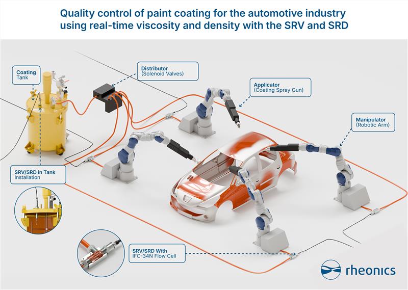Inline SRV sensors measure paint viscosity in tanks and/or lines.
